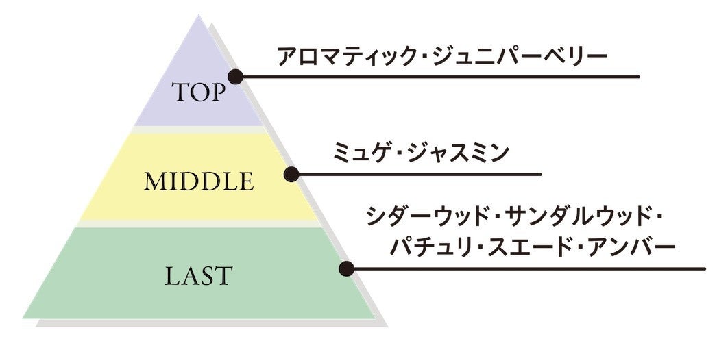 トップにジュニパーベリー、ミドルにジャスミン、ラストにサンダルウッドと