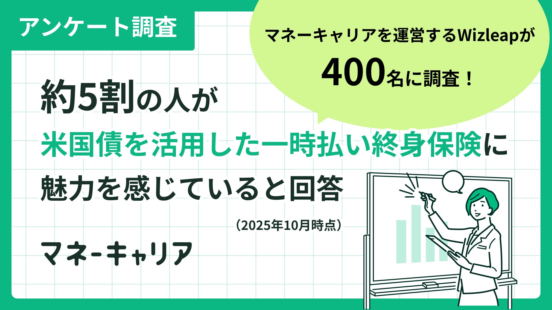 「マネーキャリア」を運営するWizleapが400名に調査!「株式インデックス投資」との選択肢の中で、約5割の人が「米国債を活用した一時払い終身保険」に魅力を感じていると回答