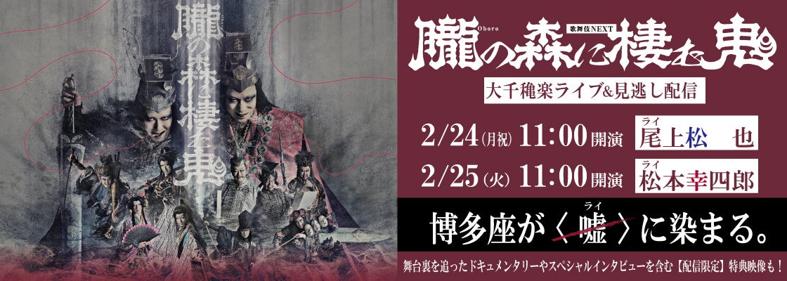 2024年12月に大好評のうちに東京公演の幕を閉じ、続く今月4日(火)に開幕した博多公演でも多くの観客を魅了している歌舞伎NEXT『朧の森に棲む鬼』。この度、博多座で迎える大千穐楽のライブ配信が決定いたしました!
