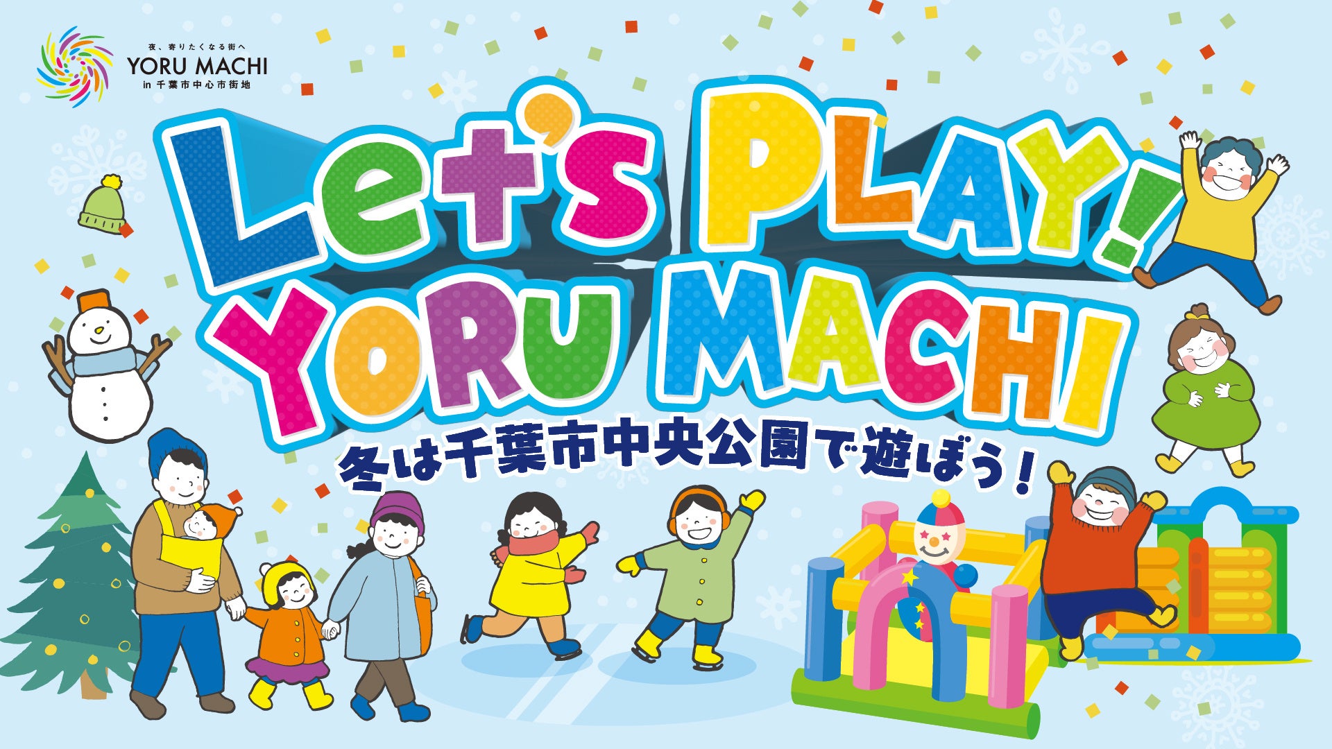 YORU MACHIスケートリンク実行委員会と株式会社レインカラーズは千葉市中心市街地活性化プロジェクト「YORU MACHI in 千葉市中心市街地」のコンテンツとして千葉中央公園に、約400㎡の国内最大級の面積を誇る屋外スケートリンク「YORUMACHIスケートリンク」と4つのふわふわ遊具が思う存分楽しめる「ふわふわファンタジア2024」を11月24日より、期間限定でオープンいたします。