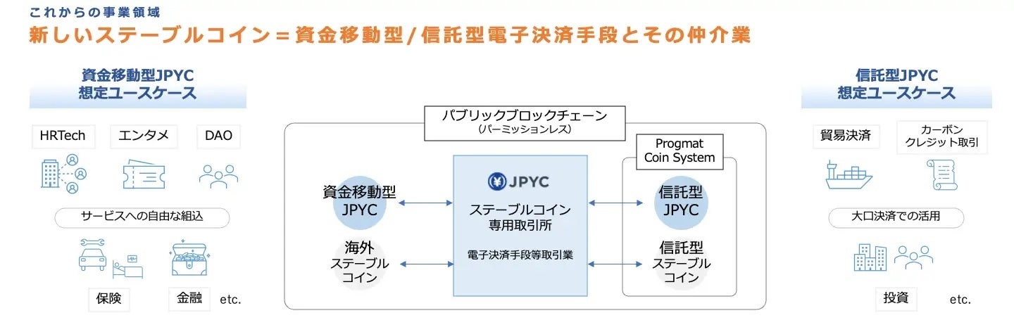 JPYC社は2023年11月に三菱UFJ信託銀行およびProgmatと提携を発表し、「Progmat Coin」基盤での「JPYC(信託型)」の発行を予定しています。