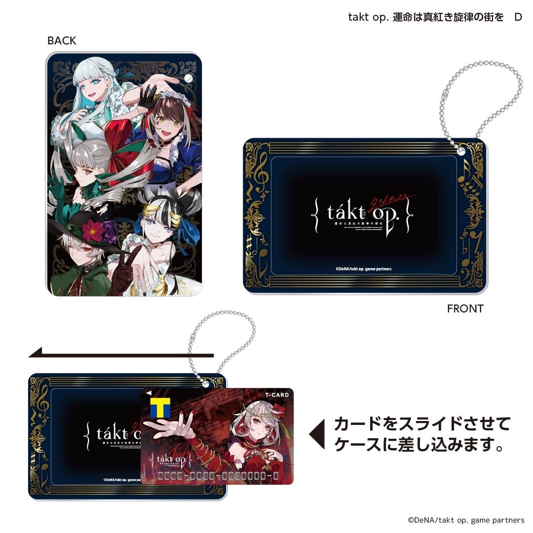 Tカードとセットで持ちたいスライドカードケース。ゲームアプリ『takt op. 運命は真紅き旋律の街を』のキャラクターが大集合!スライドカードケースはTカードのみならず、ICカードを持ち運ぶ際にもぴったりです。