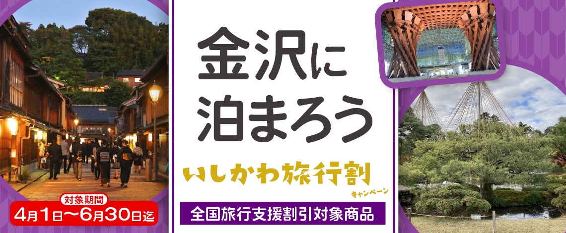 4月1日から6月29日まで延長【全国旅行支援割対象】《金沢宿泊プラン》 クーポン券お1人様あたり平日2,000円・休日1,000円分付き(4月27日〜5月7日除く)