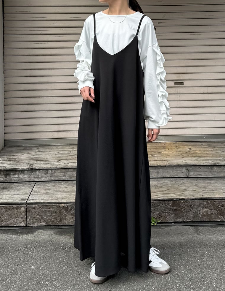 [低身長/高身長/大きいサイズ有][イージーケア]ジョーゼットポンチフレアキャミワンピース