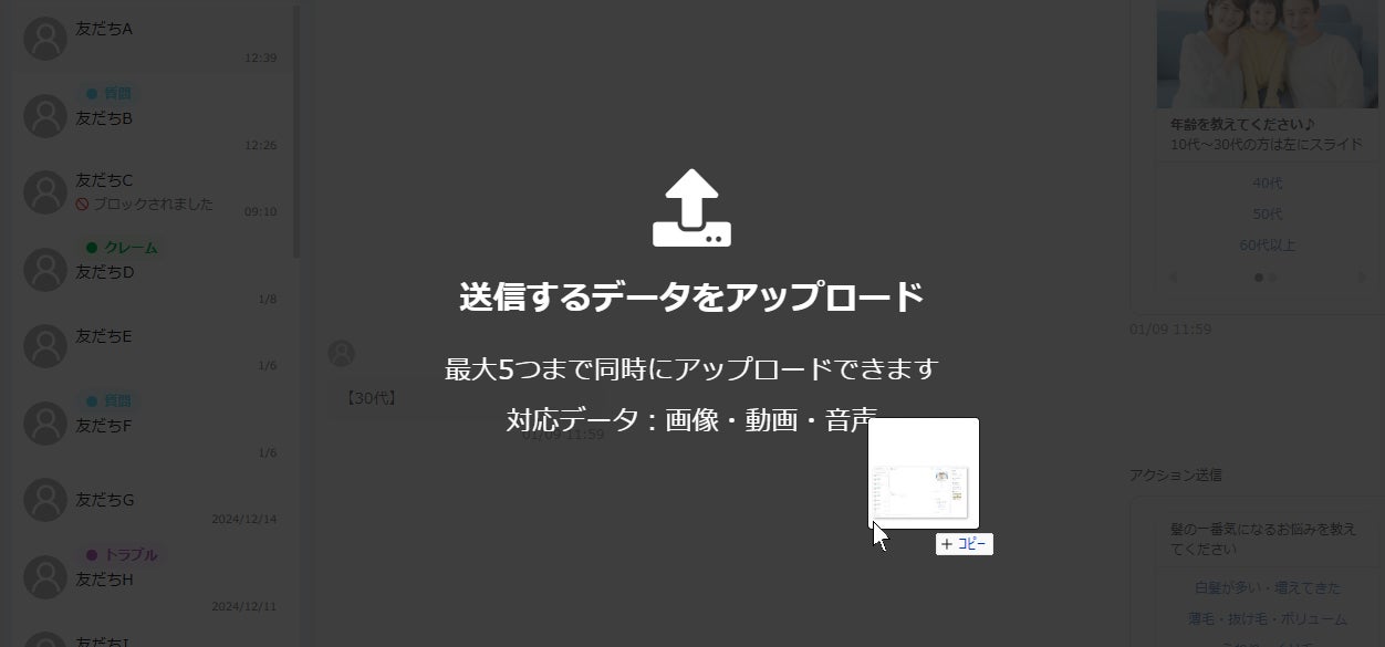 画像・動画・音声ファイルをドラッグ&ドロップで送信できるようになりました。