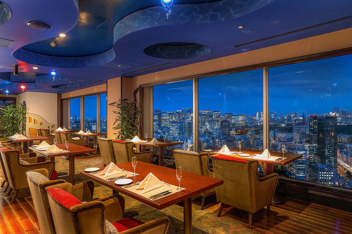 オマール海老や黒毛和種和牛などの贅沢素材が魅力の開業25周年記念コースを窓から見渡す地上150mの絶景とともに。シェフこだわりのイタリアンコースを期間限定で
