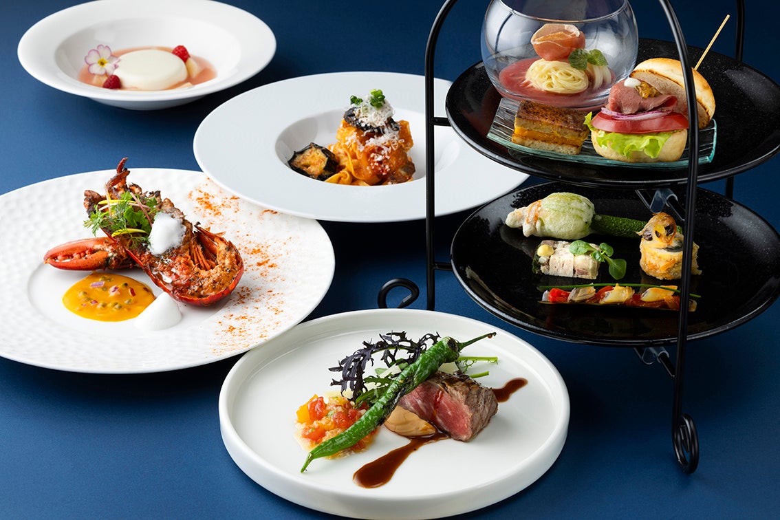 オマール海老や黒毛和種和牛などを贅沢に使用した開業25周年記念ディナーコース「VENTICINQUE (ヴェンティチンクエ)」。季節のフルーツを使用したソースを食材に合わせた、シェフの技が光る特別コースです。味わいはもちろん、見た目にもこだわった魅力的な一皿一皿を、目の前に広がる絶景とともに心ゆくまでお楽しみいただけます。