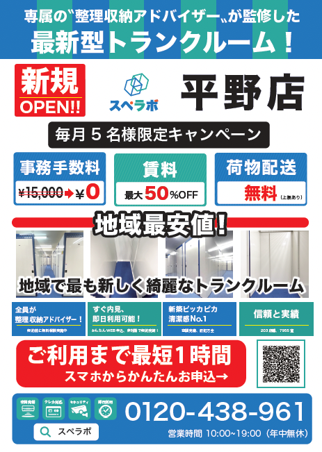 【平野店/8月1日(火)オープン】見学から契約、解約まで完全非接触・非対面、お申し込みからご利用まで最短1時間!都内、大阪などにて絶賛運営中のトランクルーム【スペラボ】が平野駅近くに出店!