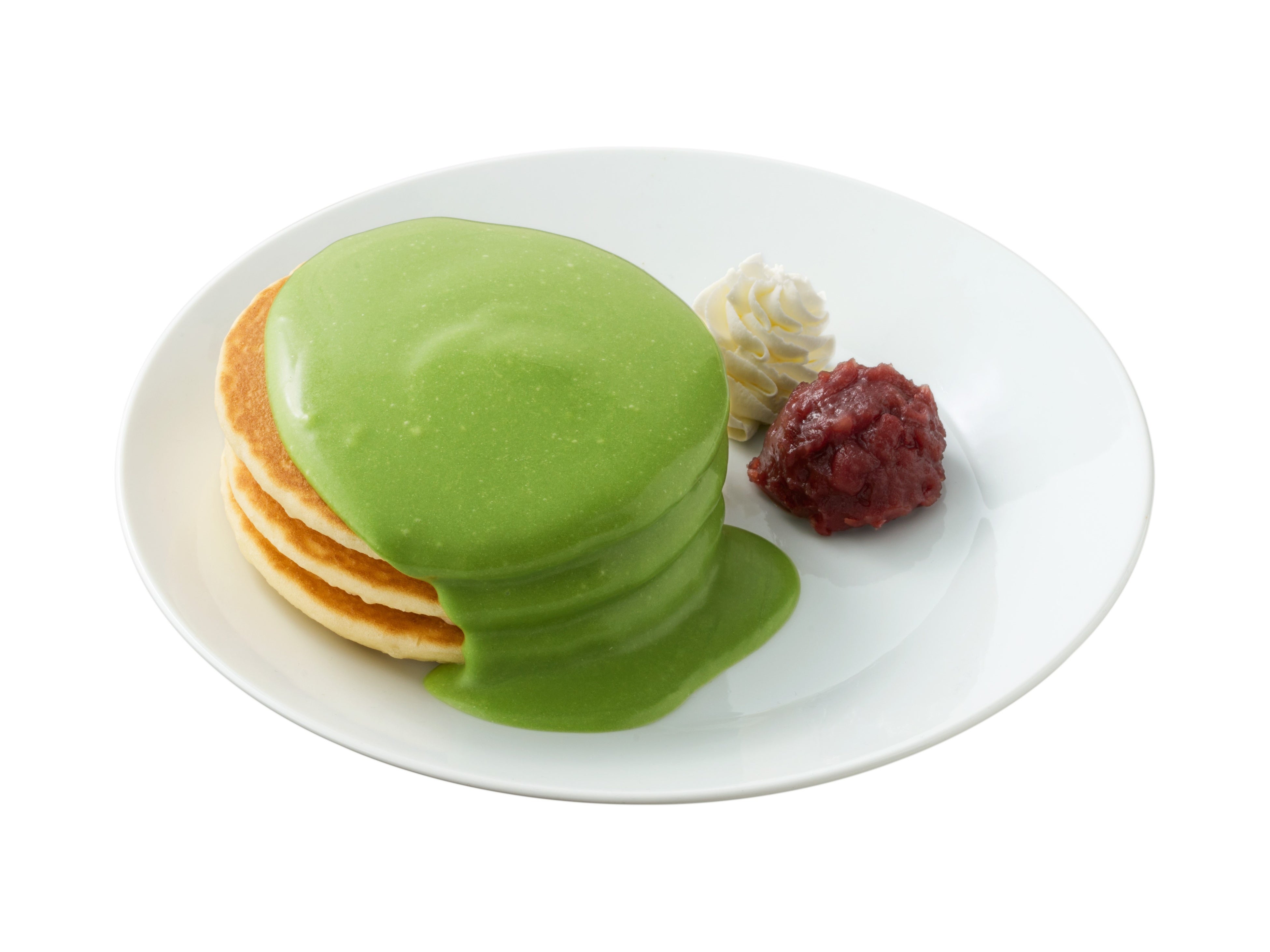 ミルクベースのクリームと抹茶を混ぜた、濃厚でクリーミーなソースをふわふわのパンケーキに好きなだけかけて召し上がれ。