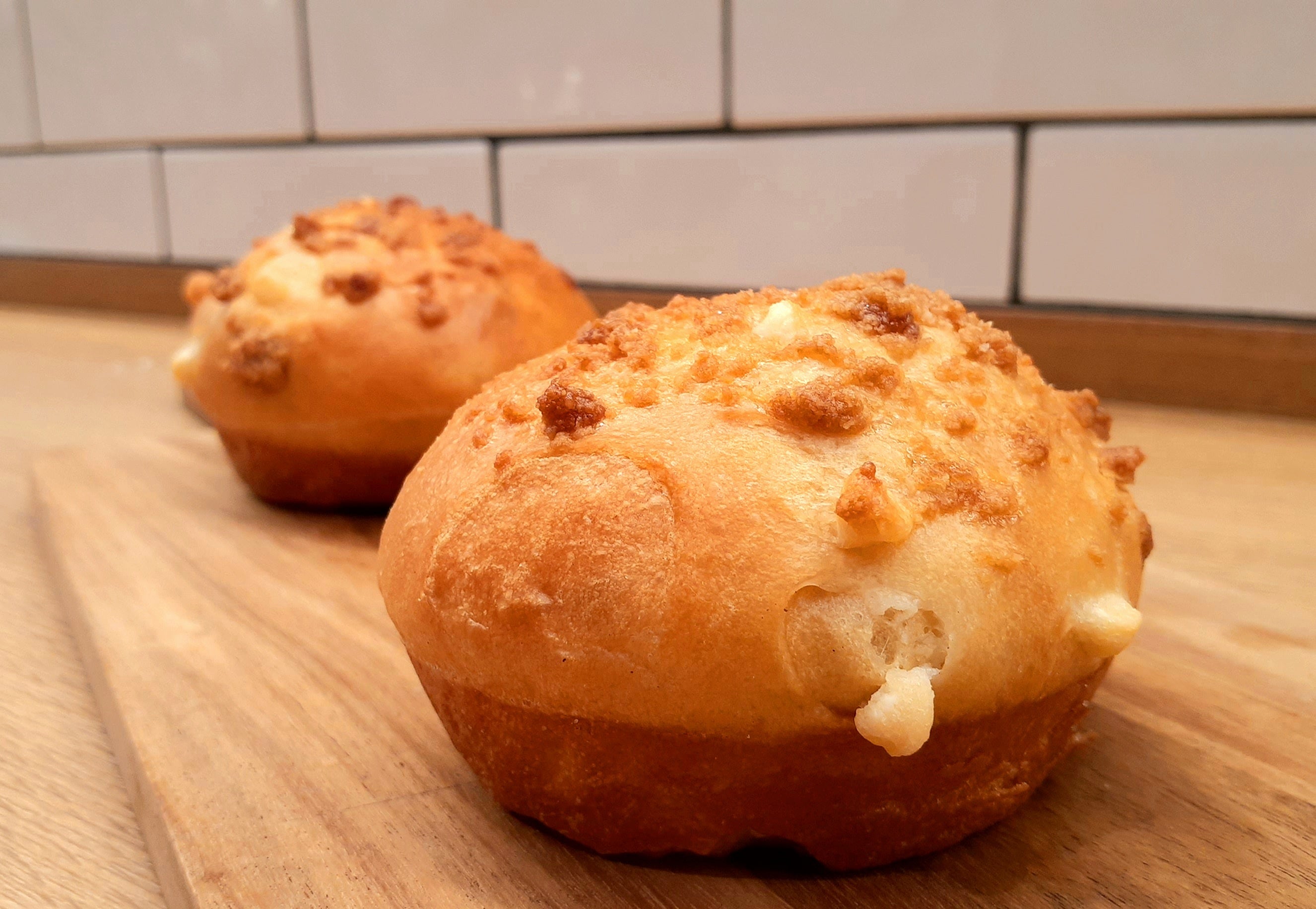 黒糖を使用した優しい甘さの菓子パン。黒糖とホワイトチョコチゥプを混ぜた生地にシュトロイゼルをトッピングしました。