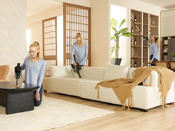 【長時間駆動と着脱式バッテリー】:着脱式バッテリーを搭載したV9そうじき は、低吸引力モードで最大45分の優れた清掃性能を提供できます。コードに絡まったり、充電不足で心配することなく、完全に自由に掃除を行えます。