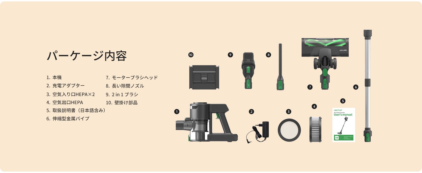 25000Pa 強力吸引 コードレス掃除機「Vactidy V9」新発売!47% OFF!