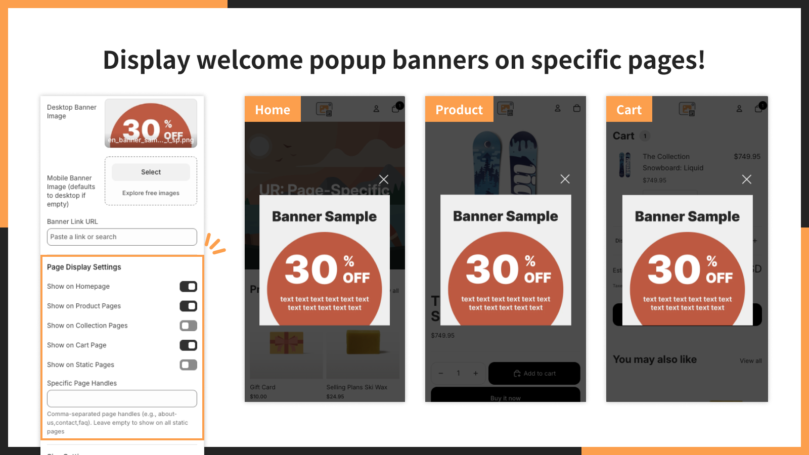 ■ ホーム、商品、コレクションなど特定ページにポップアップを表示できます。