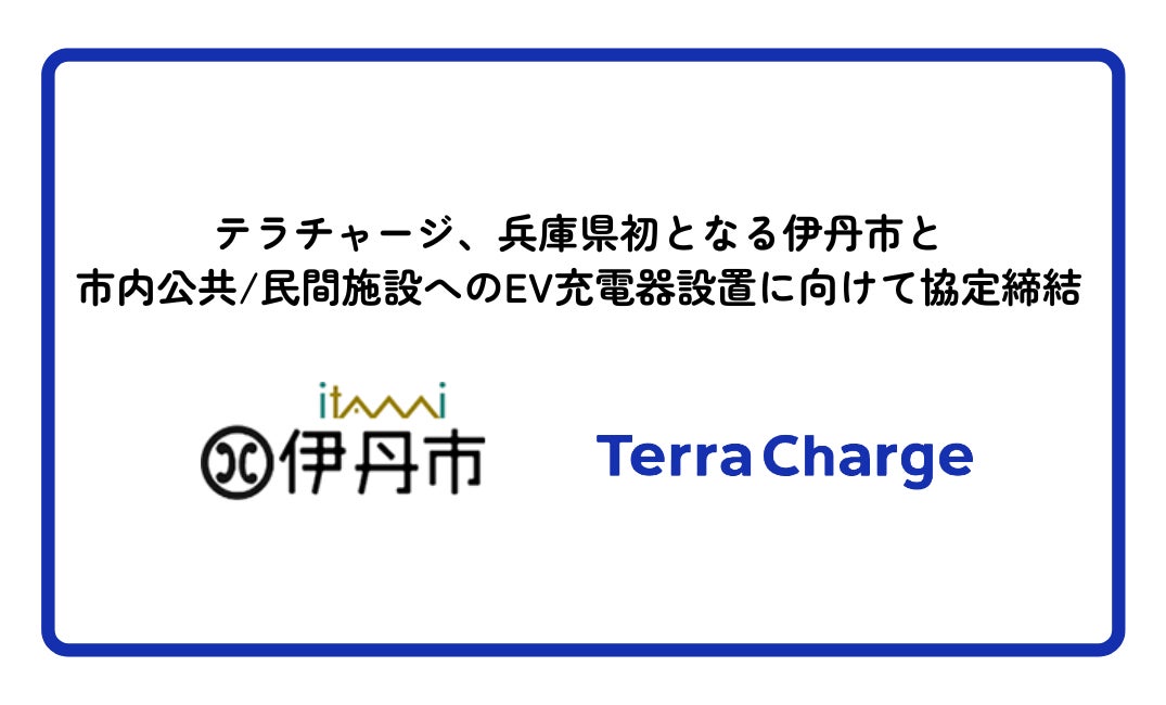 EV充電インフラ事業「Terra Charge(テラチャージ)」を展開するTerra Charge 株式会社(本社:東京都港区、代表取締役社長:徳重徹、以下「当社」)は、兵庫県伊丹市(読み:いたみし)と、「伊丹市電気自動車用充電設備等導入事業に関する連携協定」(以下「本協定」)を2024年4月18日に締結したことをお知らせします。