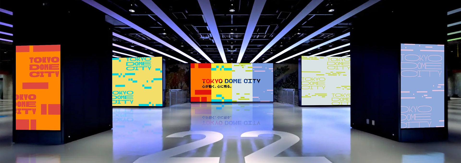 これらの映像と音は、ランドスケープリニューアルの一環として最寄りの各駅から東京ドームを繋ぐ動線上にシームレスに新設した、54台の大小LEDビジョンおよびモニター群に映し出されることにより、来場されるたくさんのお客様に向けて東京ドームシティブランドを継続的に表現しています。