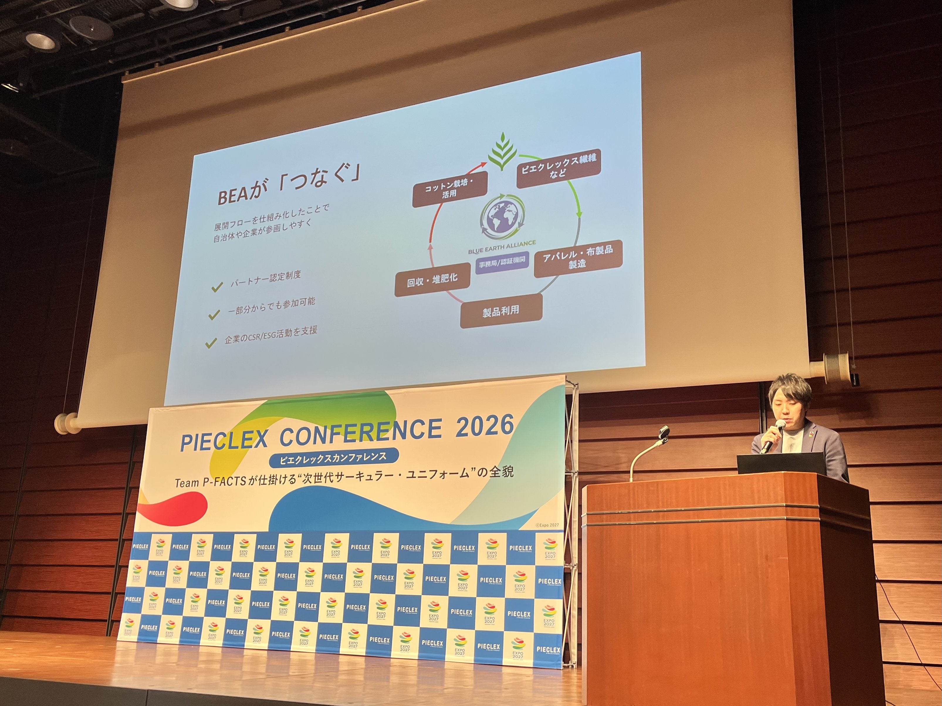 今回のピエクレックスカンファレンスという大きな舞台で、Blue Earth Allianceの設立と私たちの循環モデルを発表できたことは、大変意義深い機会となりました。循環型社会の実現には、自治体・企業・団体・消費者など多様なステークホルダーが連携することが不可欠です。BEAは、その「つなぎ役」として、一社では実現できない循環の輪を広げてまいります。P-FACTSパートナーとして、ぜひ多くの企業・団体の皆さまにご参加いただきたいと考えています。