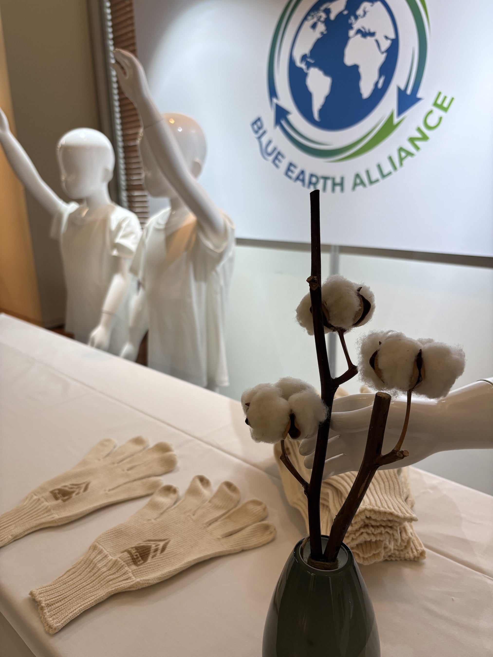 Blue Earth Alliance 展示ブース。P-FACTS対応製品やコットンを展示