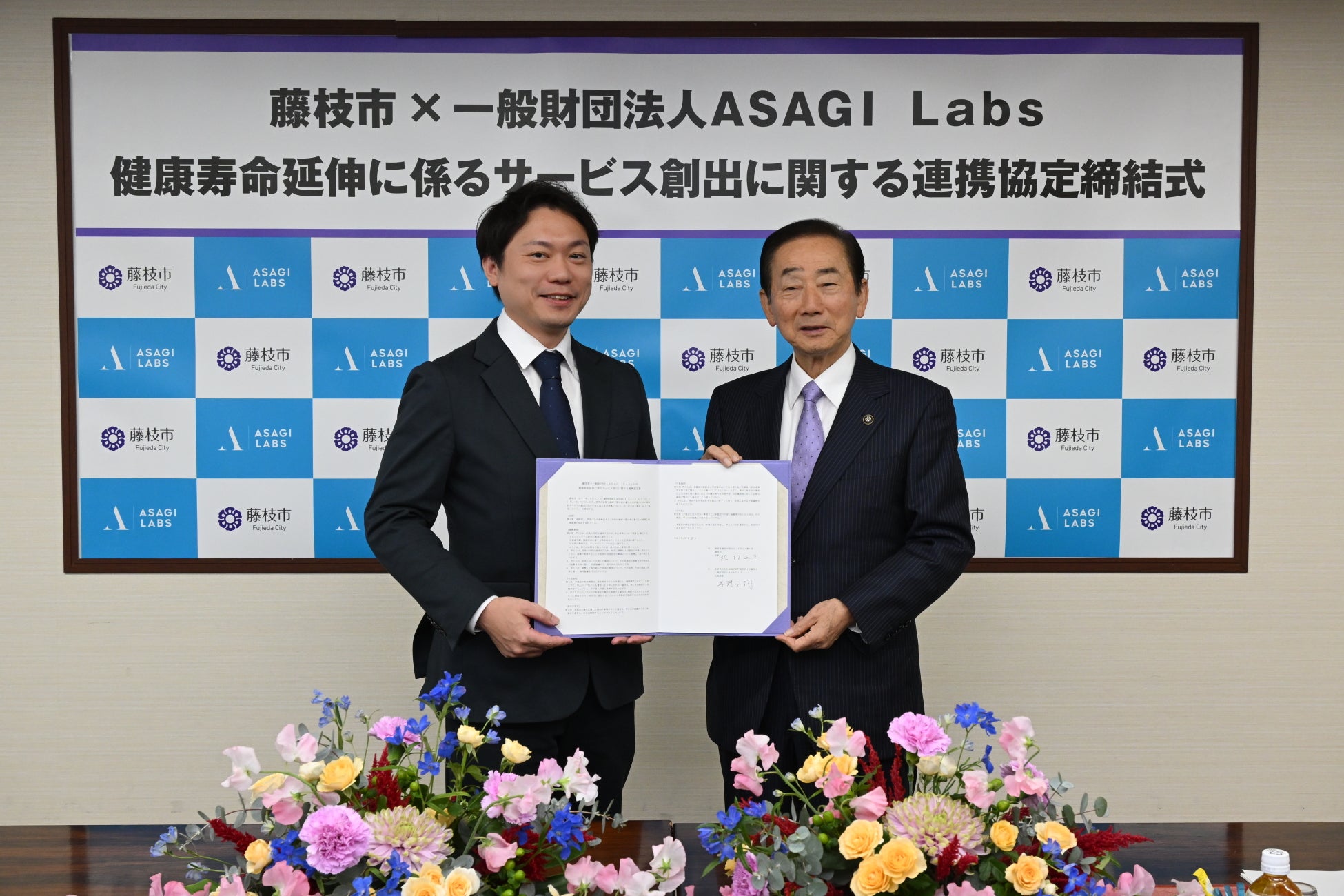 ・「健康年齢をより若く、健康寿命をより長く」をテーマにした新産業創出を目指す「藤枝HALEバレー構想」を進める藤枝市は8日、先駆的に老化制御研究を進める生命科学者・早野元詞氏が率いる一般財団法人ASAGI Labs(長野県軽井沢町)と連携協定を締結しました。