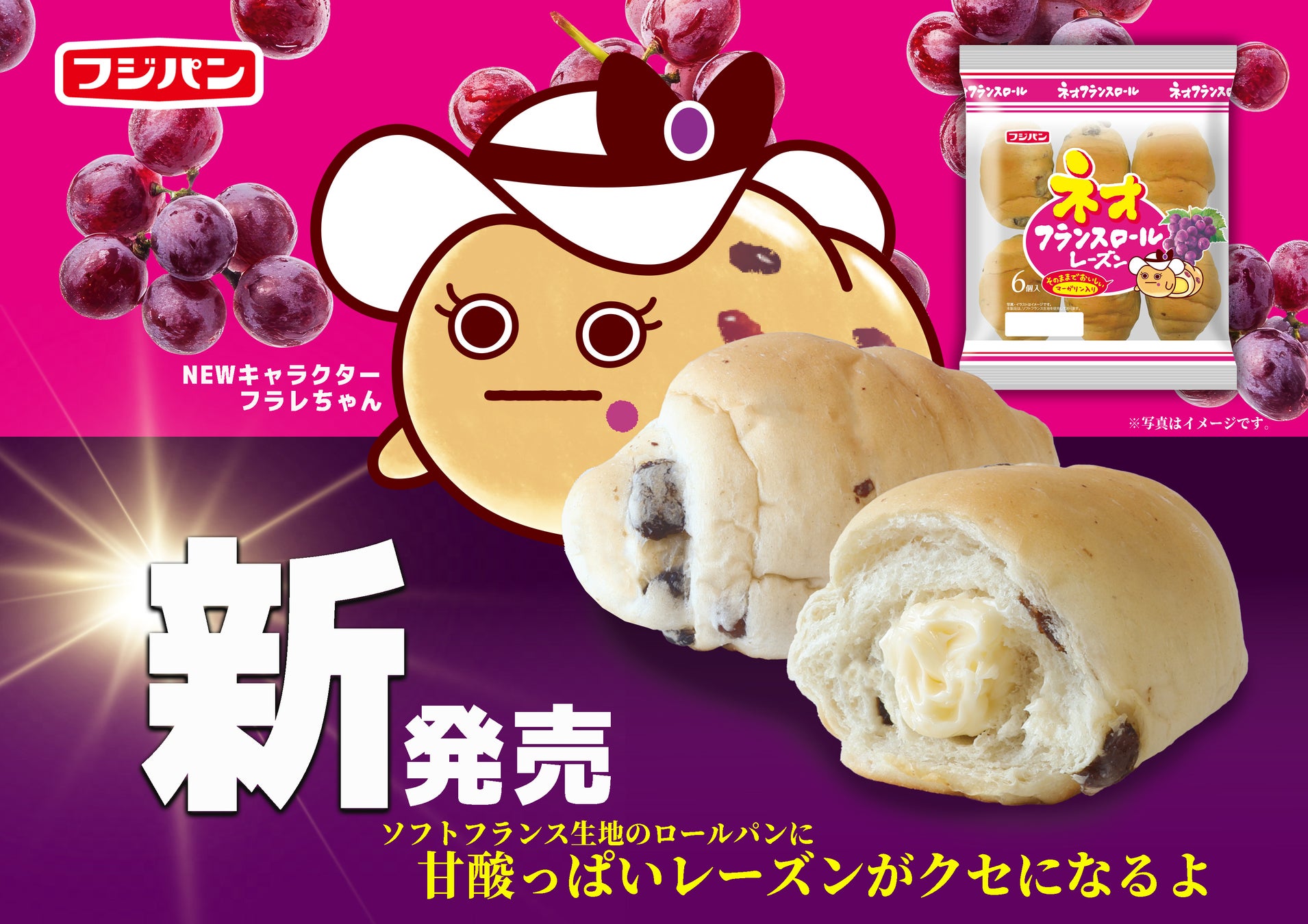 『ネオフランスロール レーズン』新発売『米粉』『フランス』リニューアル、新キャラクターも登場!
