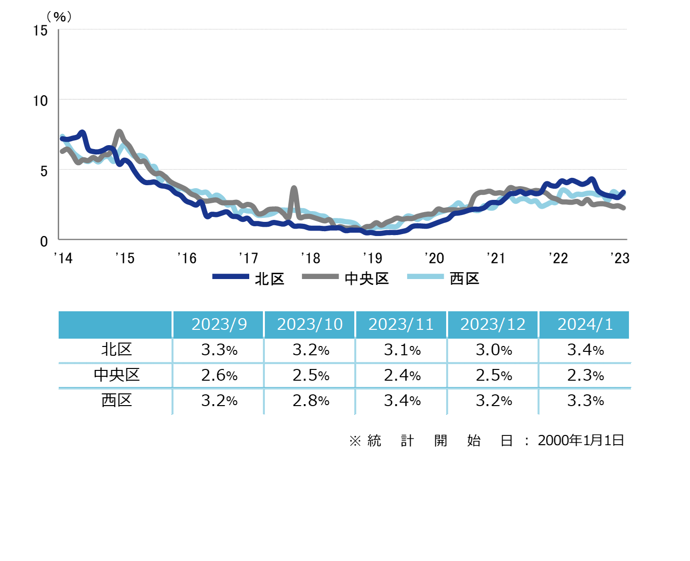 <主要3区 空室率>