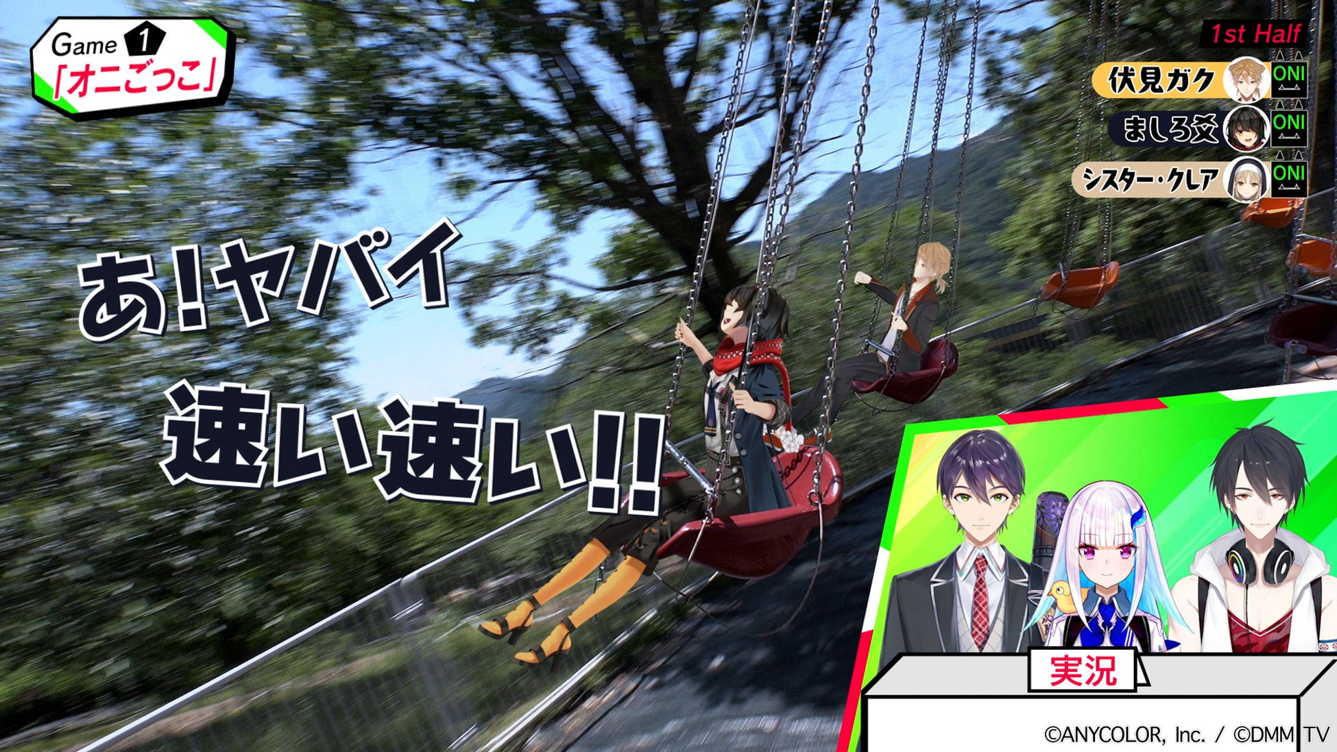 MCに夢追翔、リゼ・ヘルエスタ、剣持刀也、プレイヤーに石神のぞみ、海妹四葉、加賀美ハヤト、笹木咲、シスター・クレア、壱百満天原サロメ、伏見ガク、星川サラ、舞元啓介、ましろ爻ら、「にじさんじ」の人気VTuberたちが集結し、100万円を懸けてリアルの遊園地を舞台に大暴れ!前作を凌ぐ壮大なスケールで繰り広げられる“遊び王決定戦”の1stゲームは“オニごっこ”。今後を占うチーム分けにも大きく影響するガチバトルの行方は!?