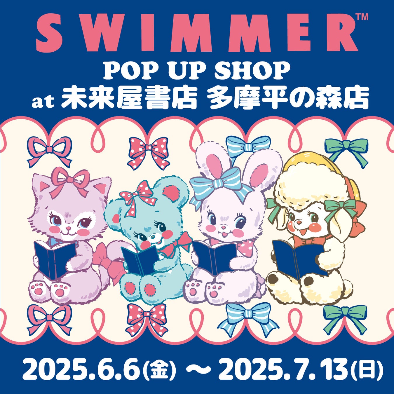 次なるは、未来屋書店 多摩平の森店(東京都日野市)で2025年6月6日(金)~2025年7月13日(日)までです!”かわいいがぎゅっ!”とつまったPOP UP SHOPにぜひお越しください♪