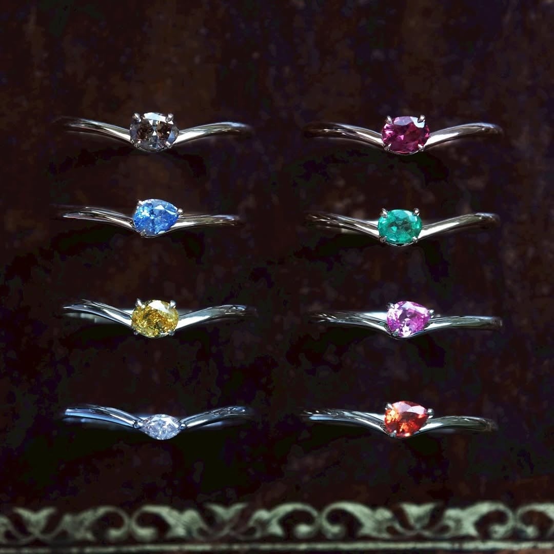 今回は、そうした特性を持つ宝石を、多彩なデザインでお仕立てしました。石の色味や変化の幅、デザインの違いを見比べながら手に取る楽しさも、このシリーズならではです。