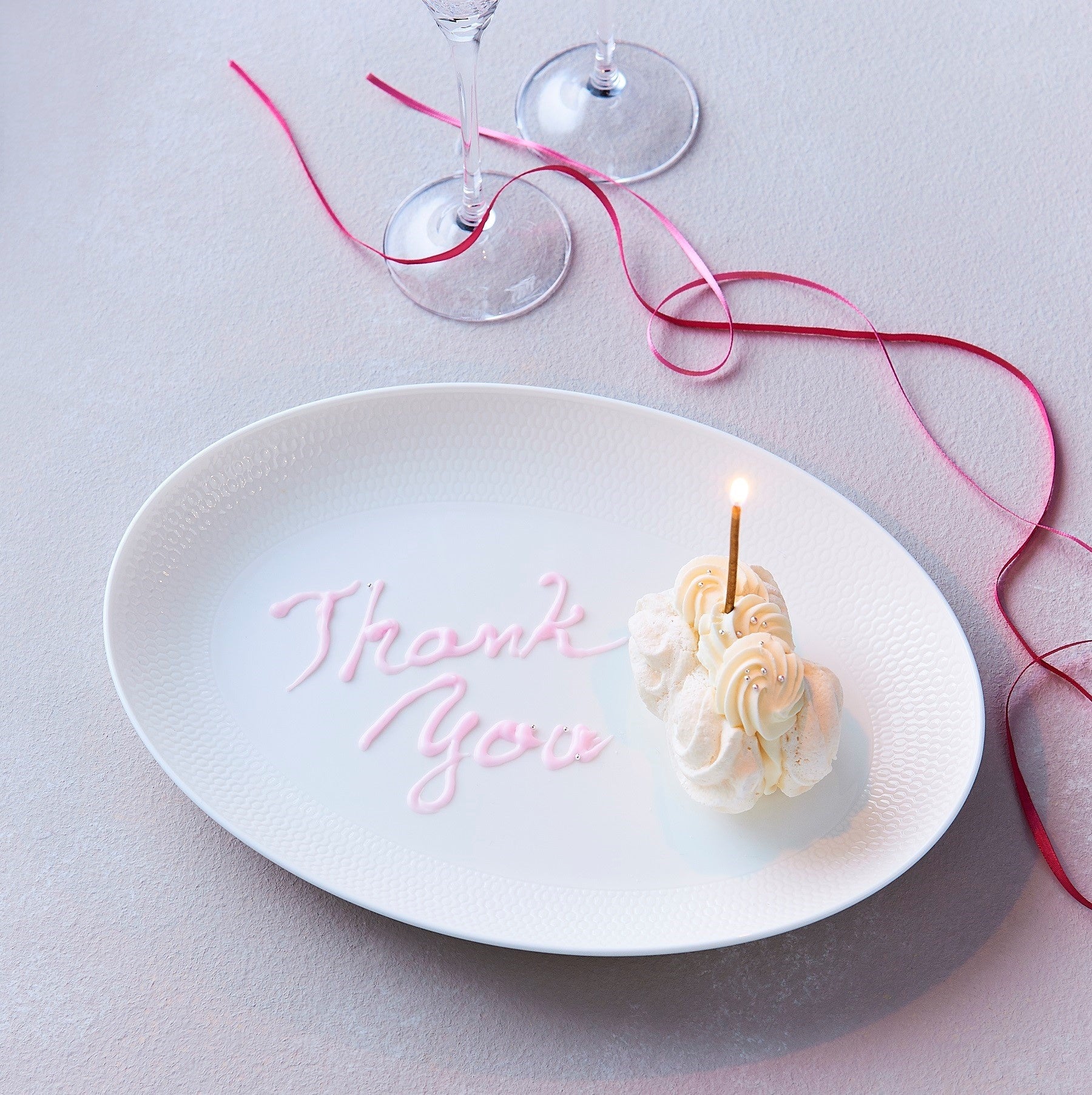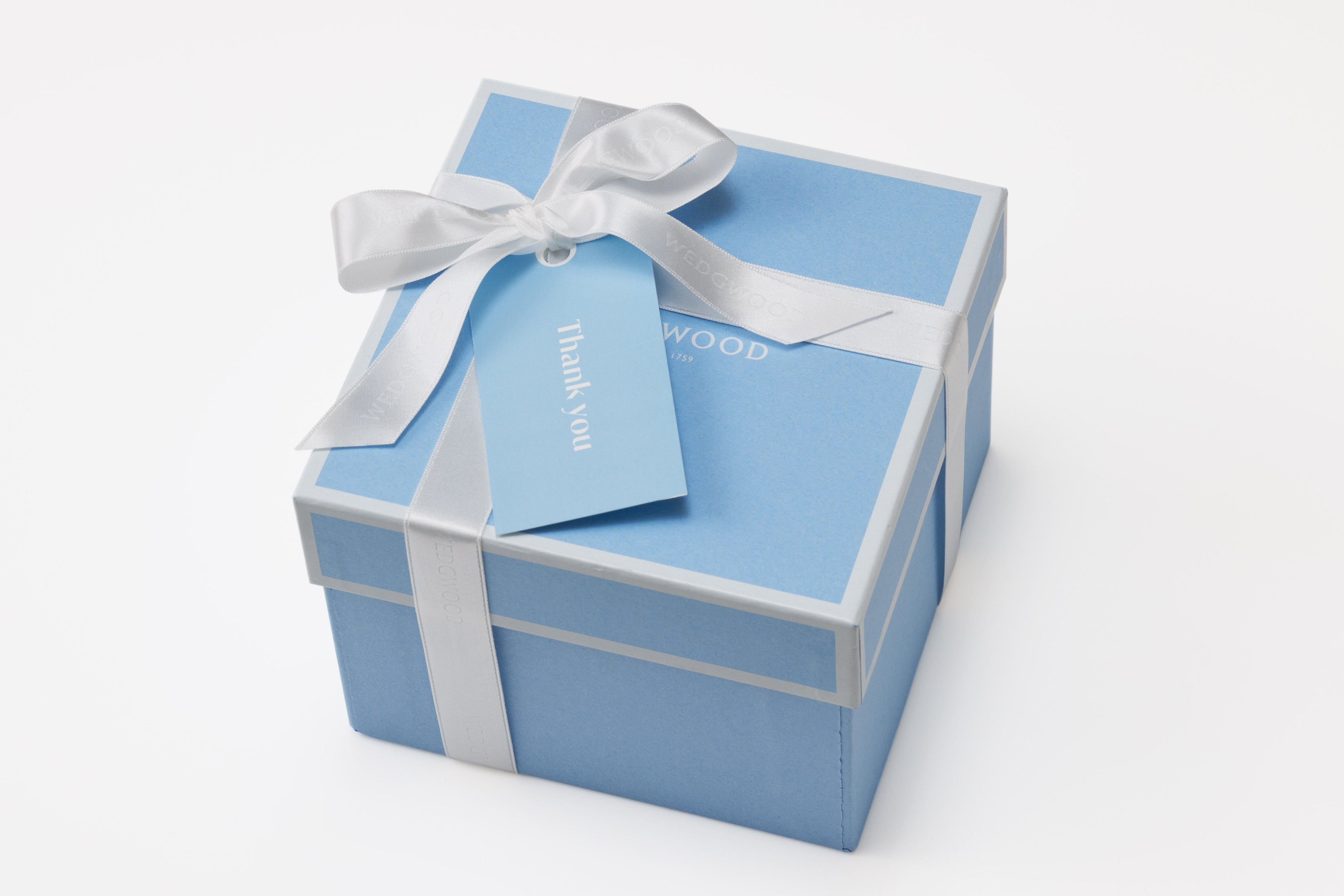 ウェッジウッド サンクスキャンペーンでは、ウェッジウッドショップで贈り物を選んでいただくと、リボンにThank you のフレーズがついたタグをお付けします。面と向かって「ありがとう」と口にするのが照れくさい方でも、これで気持ちが伝わるはずです。
