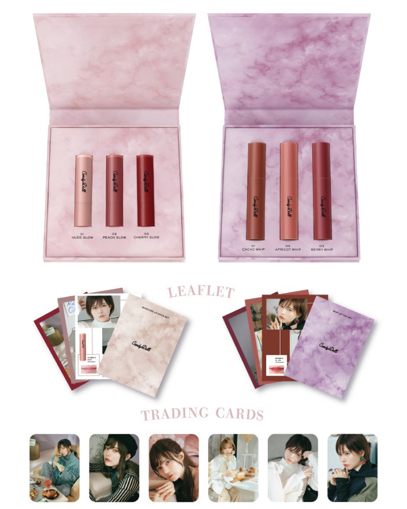 リップ3点、限定生産リーフレット&トレカがついた限定デザインBOX。