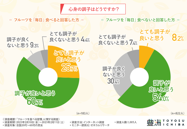 フルーツを毎日食べる方と食べない方で、心身の調子に違いが出る結果となりました。