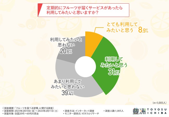 フルーツの定期便、利用してみたいと答えた人は合計で4割