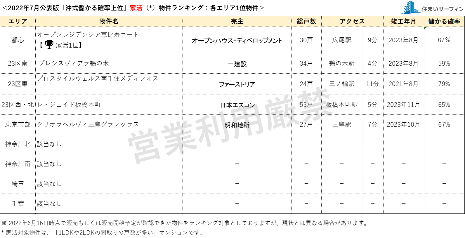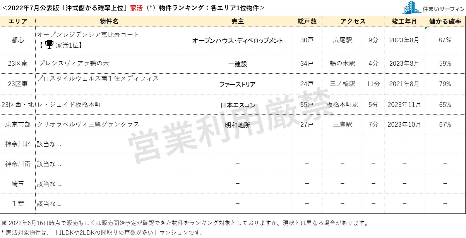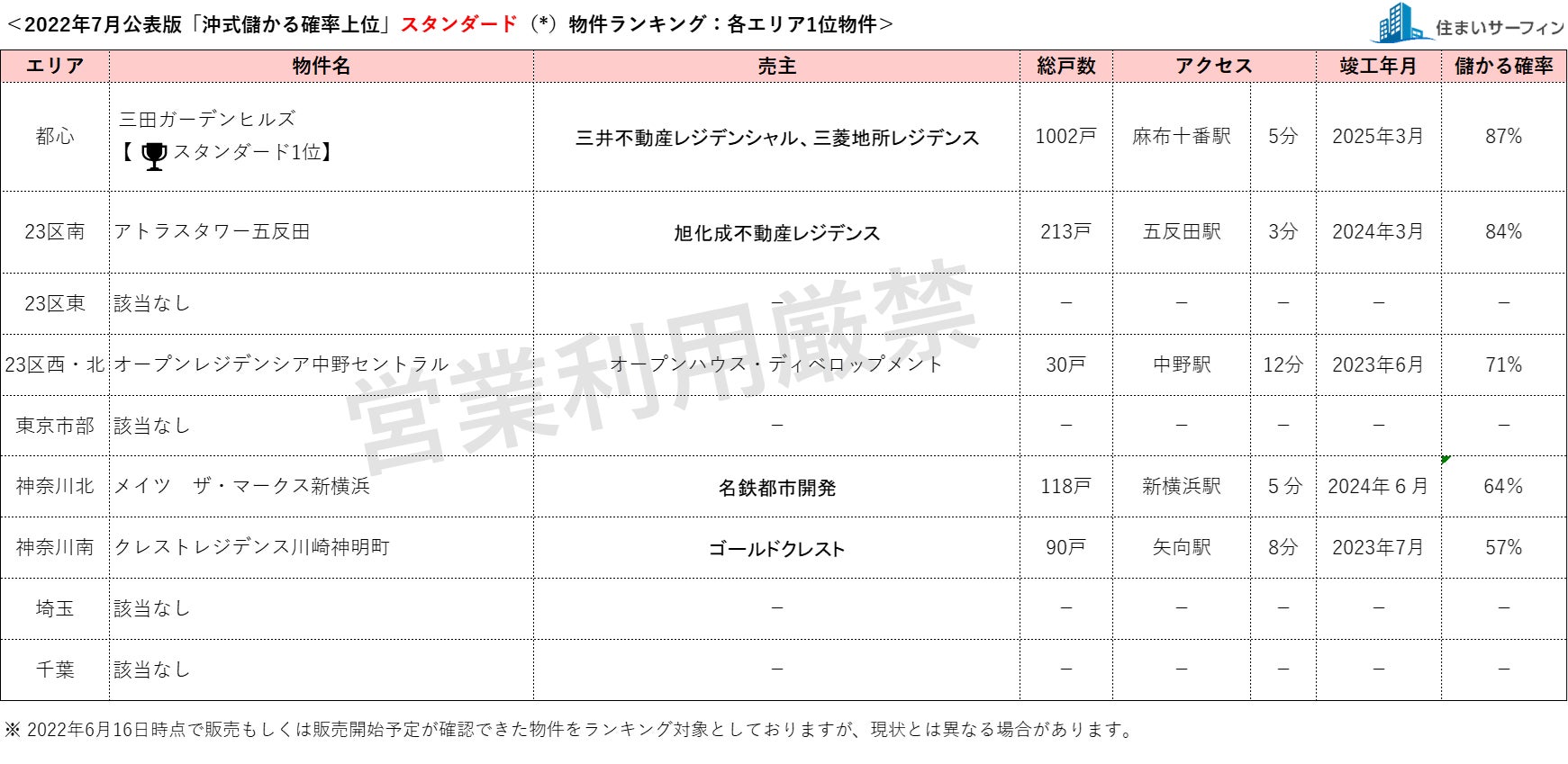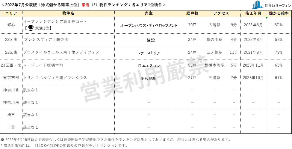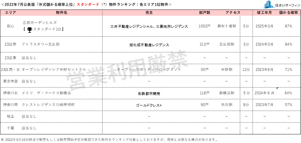 7月公表分は、2022年6月16日時点で販売もしくは販売予定が確認できた物件を対象としています。