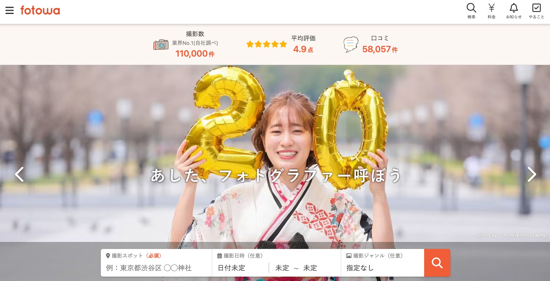 「fotowa」は、撮影して欲しい人とプロのフォトグラファーをつなぐ、家族・子ども向けの出張撮影プラットフォームです。シンプルな料金設計と、好きな場所に好きな作風のフォトグラファーを指名して撮影予約ができるのが特徴。