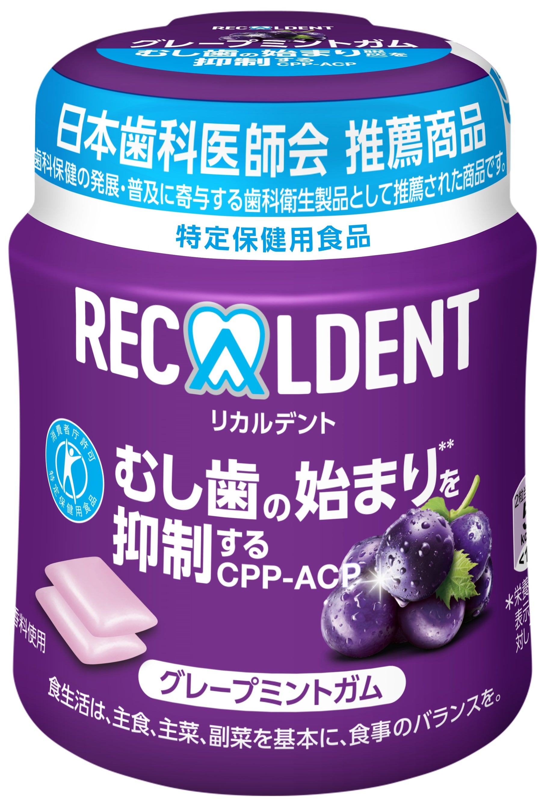 『リカルデント グレープミントガム』、『リカルデント さっぱりミントガム』、『リカルデント フルーツアソートガム オレンジ&ストロベリーボトル』は、特定保健用食品のガムです。「むし歯の始まり(脱灰)抑制」「再石灰化を促進」「耐酸性を増強」の働きを持つ関与成分「CPP-ACP」配合で、歯を丈夫で健康に保つのに役立ちます。この3つの働きを持つ「CPP-ACP」配合で特定保健用食品として許可を取得しているのは『リカルデント』だけ。※3