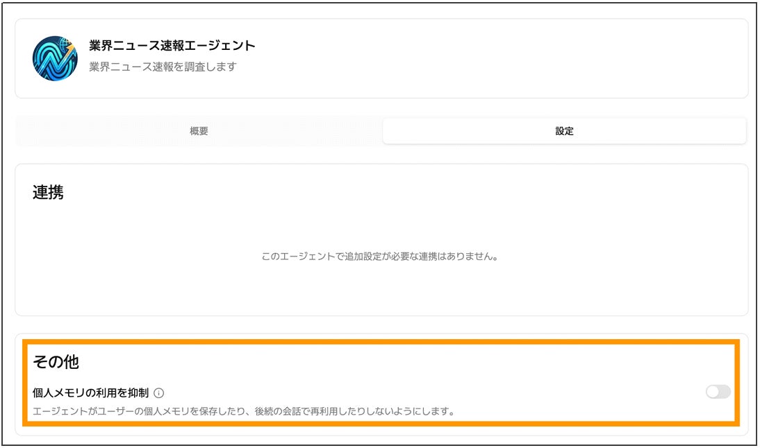 業務に本当に必要なツールのみを厳選して有効化することで、AIの回答スピードと精度を高く保つことができます。