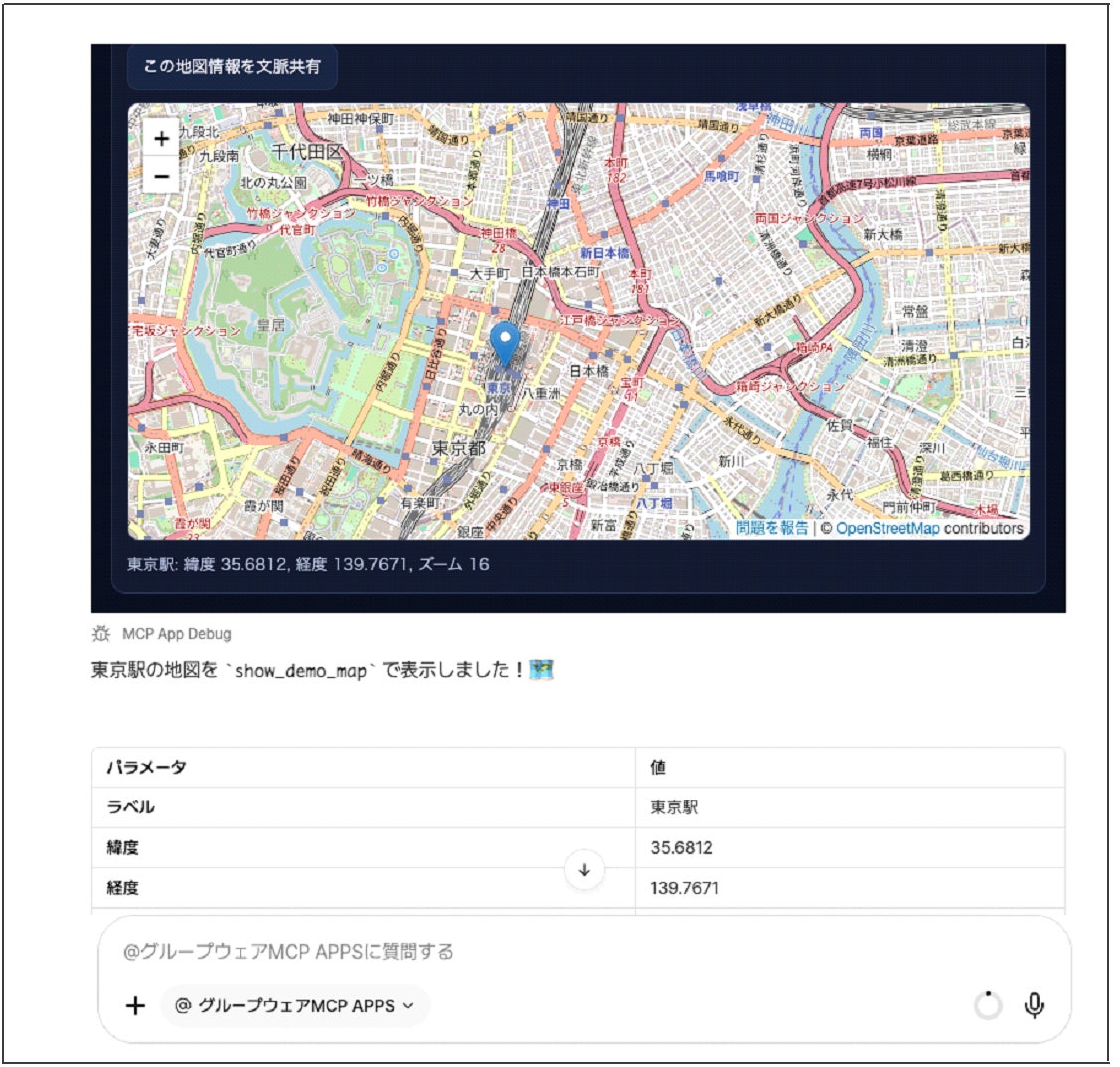 新たな接続規格「MCP Apps」への対応により、外部ツール(MCPサーバー)の「専用操作画面(UI)」をmitoco Buddyのチャット内に直接表示・操作できるようになりました。