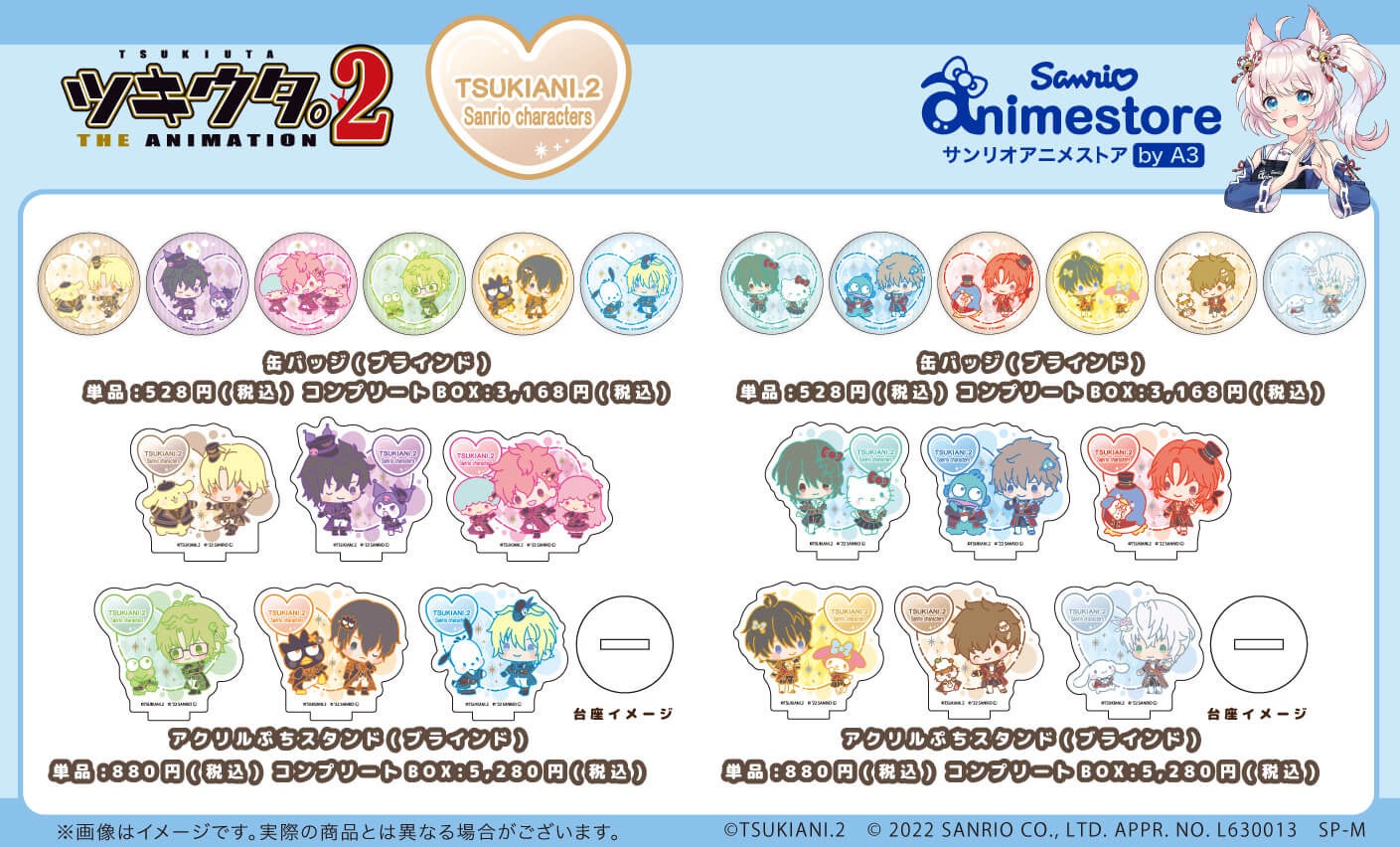 テレビアニメ『ツキウタ。 THE ANIMATION 2』とサンリオキャラクターズのコラボレーショングッズからは、缶バッジとアクリルぷちスタンドが登場!