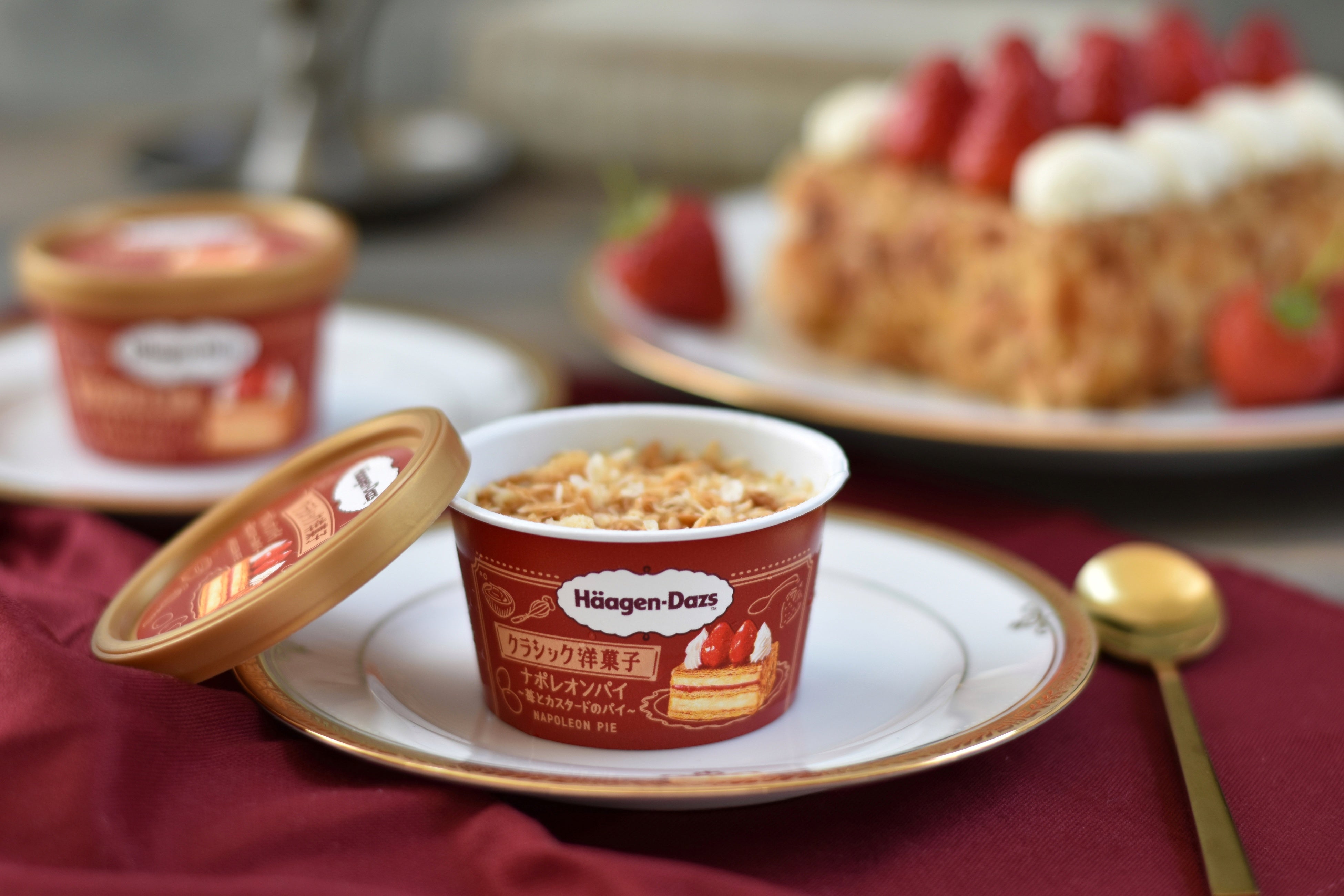 伝統的な洋菓子をハーゲンダッツ流にアレンジ! 新シリーズが登場 ミニカップ クラシック洋菓子『ナポレオンパイ~苺とカスタードのパイ~』『レーズンバターサンド』