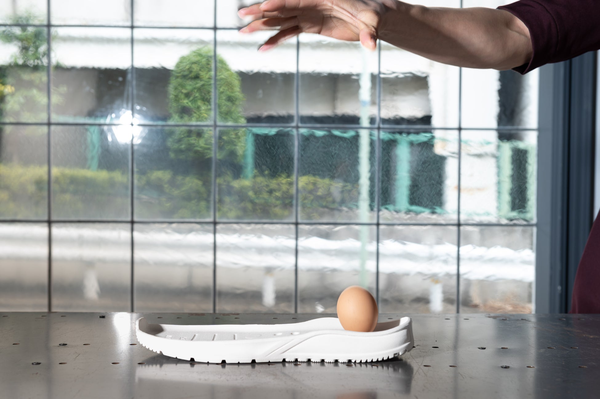 今回発売される新作の最大の特徴は、天然ゴムを発泡した素材のR-TECHソールです。ラバー底に比べ、乾いた路面で約2.3倍、濡れた地面でも優れた防滑力を発揮します。また、摩擦耐性はラバーの約2.1倍で、長く愛用できるというのも嬉しいポイントです。そして、クッション性はラバー素材の約1.4倍。今回シューズの機能について検証した「GetNavi Web」編集部の実験では、卵を30cmの高さから落としても割れないという結果が出ました。高いクッション性により、ひざや腰への衝撃を軽減し、長時間歩いても疲れにくい仕様になっています。さらに、 R-TECHソールは、有害物質を一切使用せずに作られた、環境や人体に配慮したサステナブルなアイテムです。