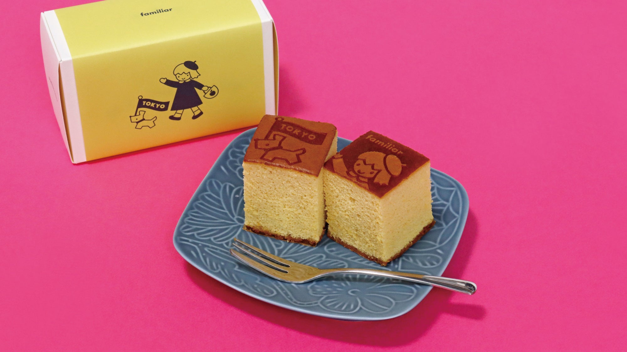 カステラ専門店「DE CARNERO CASTE」とのコラボレーションカステラ。東京旅行に来た女の子とテリアのポップアップ限定の焼き印を施し、味はプレーンとチョコの2種類をご用意。2個入りでちょっとしたプレゼントにもぴったりです。