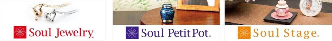 当社では、身に着けるジュエリータイプの「Soul Jewelry/ソウル ジュエリー」、デザインされた小さな骨壺「Soul Petit Pot(ソウル プチポット)」、「Soul Stage(ソウル ステージ)」の3ブランドからなる「ソウルシリーズ」として、直営店とオンラインストアで販売。全国の葬儀社・石材店・仏壇店にも卸販売を行っております。