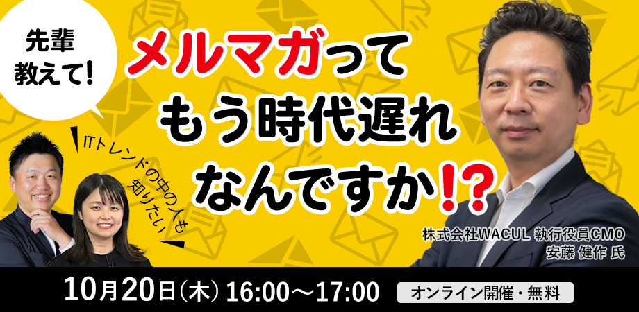【10/20(木)Webセミナー】WACUL社と共催で「先輩教えて!メルマガってもう時代遅れなんですか!?」を開催