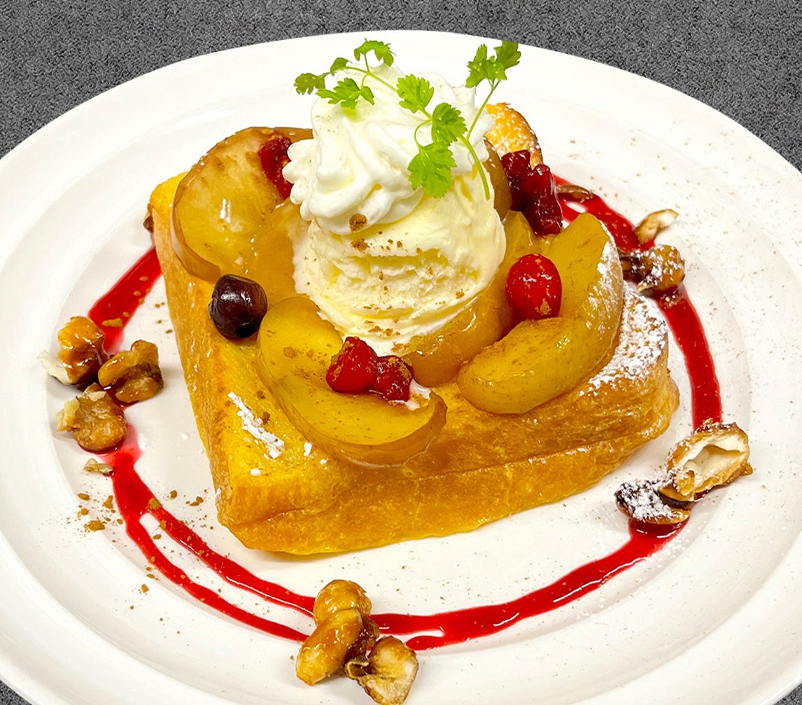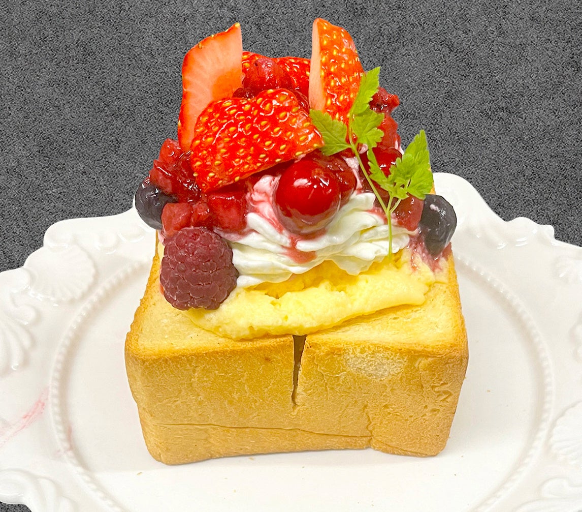 サクふわ食感の厚切りトーストにじゅわっととろける発酵バターの濃厚なコクとはちみつの優しい甘さが広がる『発酵バターとはちみつ』たっぷりの生クリームと濃厚カスタード、フレッシュないちご、甘酸っぱいラズベリー、ブルーベリーをトッピングした『ベリーベリーストロベリー』カリッと焼いたジューシーなベーコンにチーズのコクと卵のまろやかさが相性抜群な『カルボナーラ』シナモン香るリンゴのコンポートと濃厚なバニラアイス、甘酸っぱいベリーが口いっぱいに広がる『林檎とシナモン』トマトのほどよい酸味が甘みを引き立てるソースに旨みたっぷりのベーコン、シャキシャキ食感のピーマン、とろ〜りとろけるチーズをたっぷり使った『ナポリタンピザ』なめらかでコクのあるタマゴサラダをのせた、どこか懐かしいほっとする優しい味わいの『たっぷりたまご』軽食やデザートにぴったりの食べ応え抜群なサクふわ食感の厚切りトーストを是非ご賞味ください♪