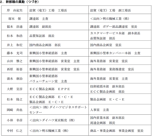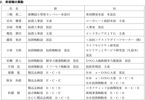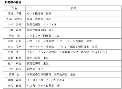 ダイハツ工業(株)は、2022年1月1日付で下記の通り、幹部職の昇格・人事異動を行います。
