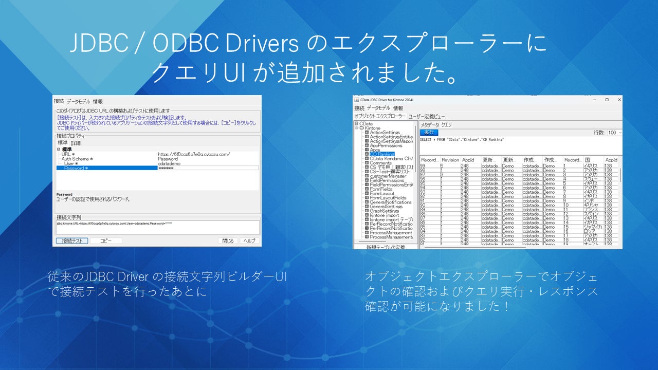 kintone Drivers の追加機能詳細はこちら:https://www.cdata.com/jp/blog/kintone-v24-newfeatures