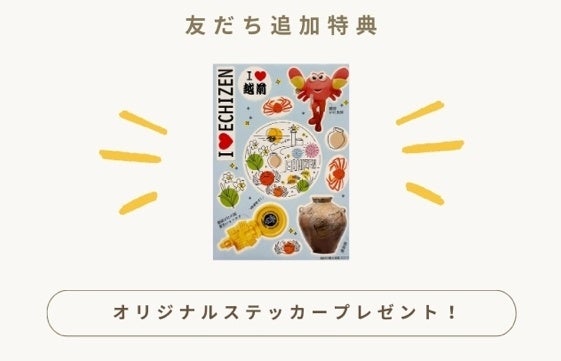 新規入会キャンペーンも合わせて実施し、公式LINEにお友だち登録いただくことで、オリジナルステッカーをプレゼントいたします。※道の駅越前ないの観光案内所窓口にご訪問いただき引換となります。