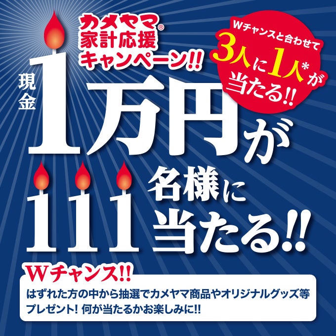 ドドーーンと111名様に「現金1万円」が当たる!カメヤマ家計応援キャンペーン開催中
