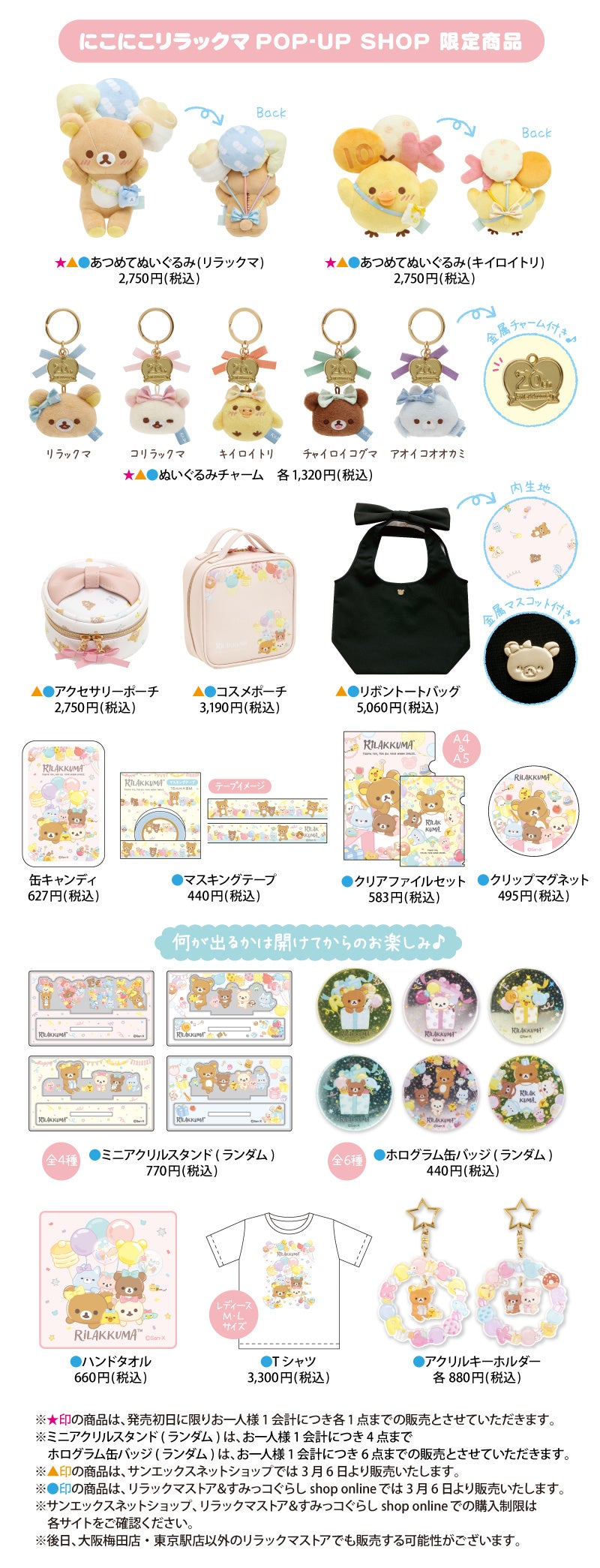 ※画像内の●印の商品は、リラックマストア&すみっコぐらしshop onlineでは3月6日より販売いたします。