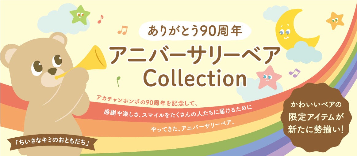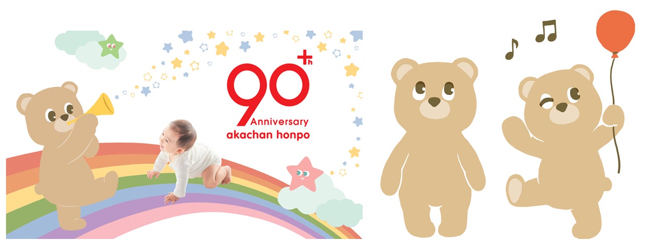 90周年を記念して、たくさんの方々に笑顔と楽しさをお届けできるようさまざまな企画を用意しています。子育ての生活シーンの中で、親子で親しみを感じていただける商品やコンテンツとして「アニバーサリーベア」デザインが新たに誕生しました。
