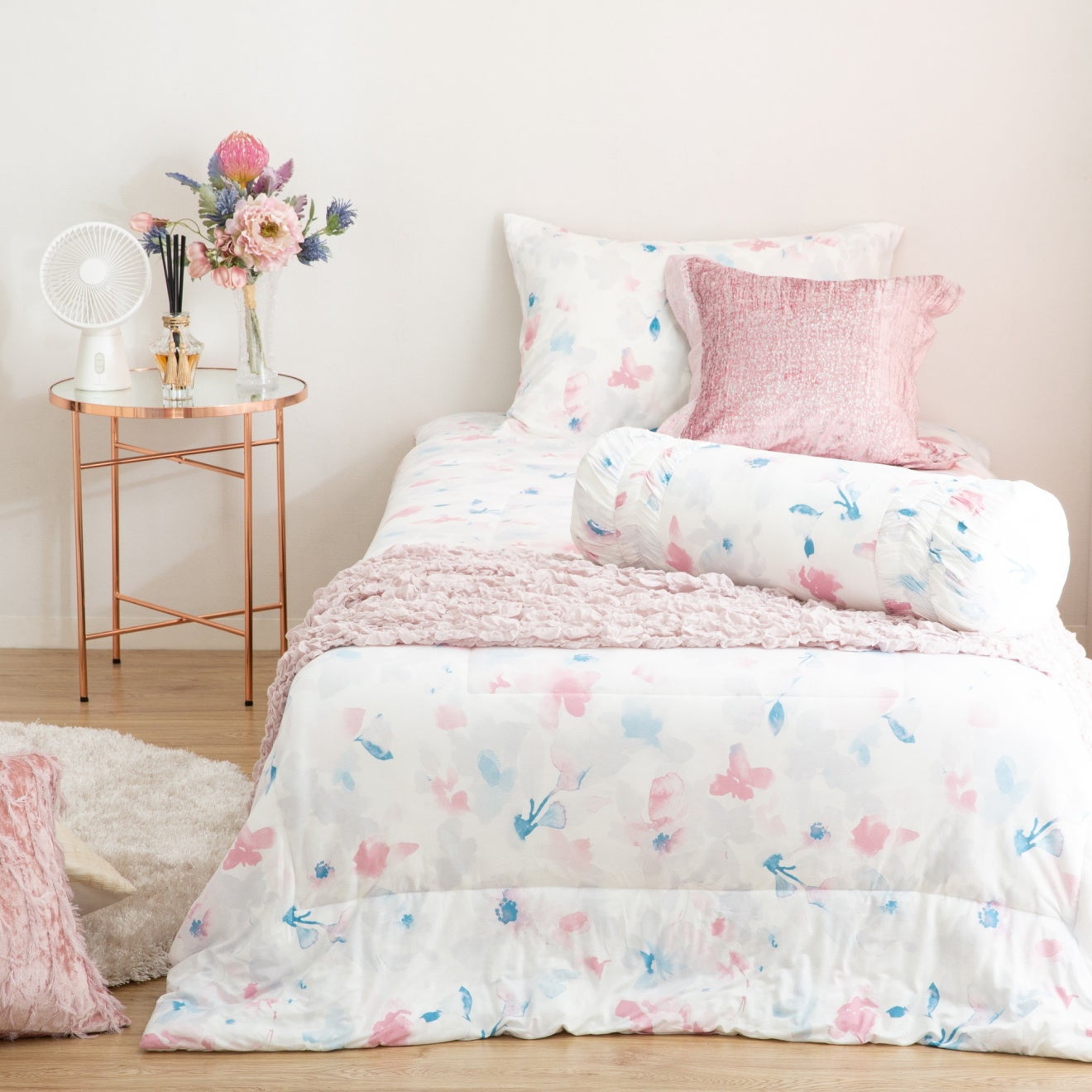 淡いトーンで描かれた水彩花柄が涼し気で、華やかな印象を演出してくれる人気のシリーズです。裏はシンプルな無地のデザインなのでリバーシブルでお使いいただけます。